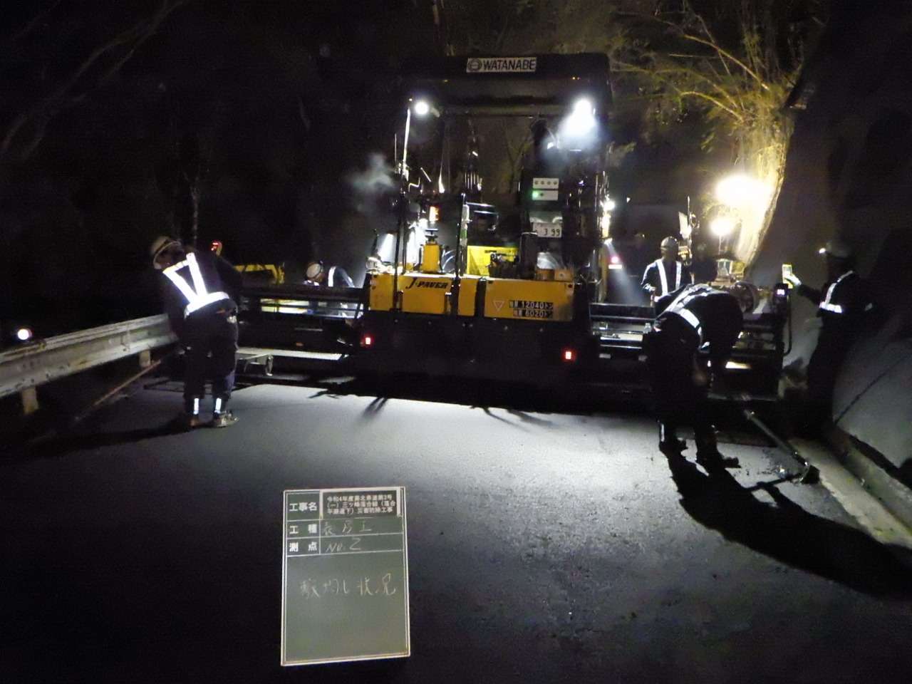 工程最後の舗装 今年は暖かかったので、夜間工事も昨年に比べ楽でした
