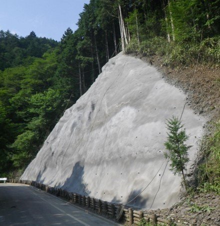モルタルやコンクリートを直接法面に吹き付ける工法です。施工性に優れており、温度変化や浸透水への影響も受けにくくなります。